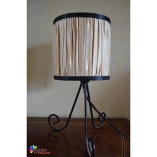 Applique en soie sauvage froncée beige, bordée d'un galon noir et doublée du même tissu ..